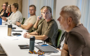 Sara har generellt svårt att bli arg. Men här blir det ändå tydligt att det blixtrar till. Sara har en något ambivalent inställning till de återkommande hyllningarna från poliskollektivet.
