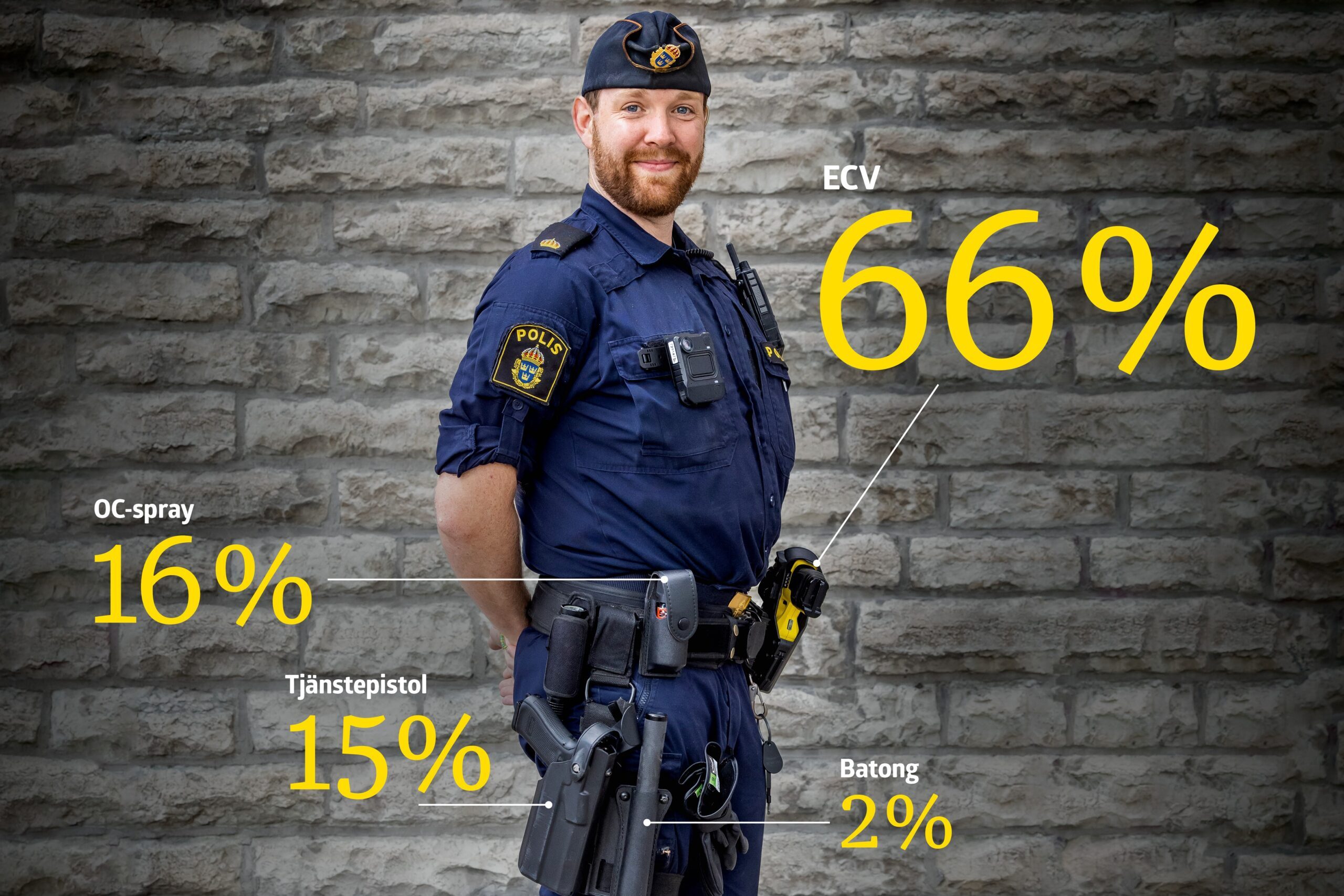 Polistidningen har begärt ut statistik från Polismyndigheten för att få en bild av hur ofta poliser använder de fyra vapen som numera ingår i standardutrustningen: batong, tjänstepistol, OC-spray och ECV.