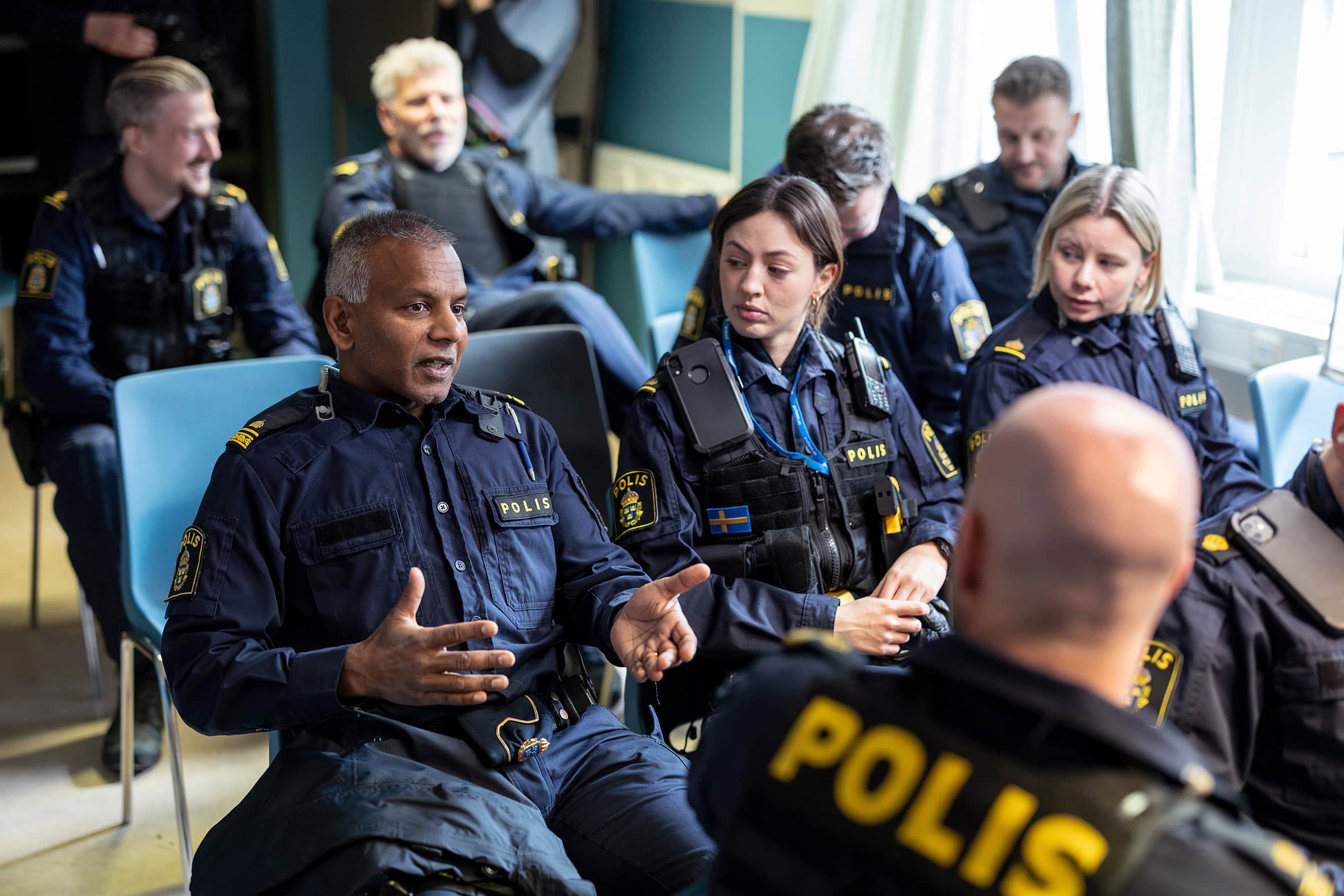 – I första säsongen spelade vi in en scen på Drottningtorget där Magnus (Oscar Töringe) och Sara (Amanda Jansson) skulle göra ett ingripande. Då bröt han mitt i och frågade: Ska jag ha handskar på mig eller inte? Det är sådana saker det kan handla om.